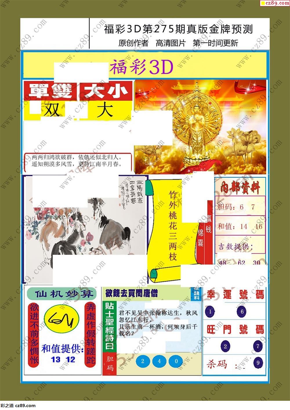 > 25年275福彩3d真版金牌预测彩报