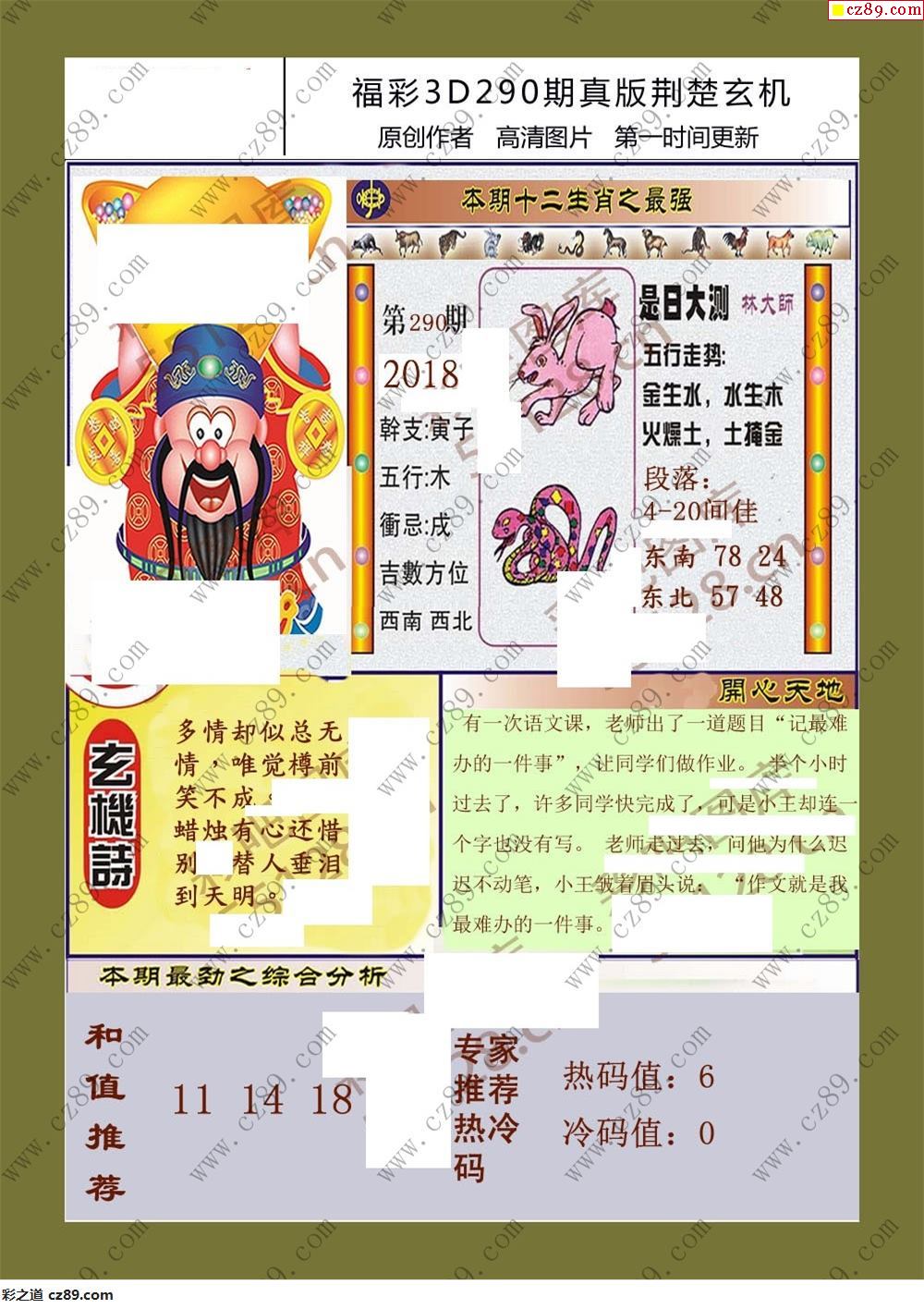 25福彩3d290期真版荆楚玄机彩报