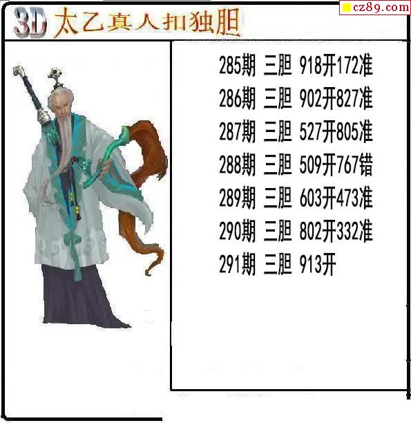 > 太乙真人独胆2025291期3d图谜