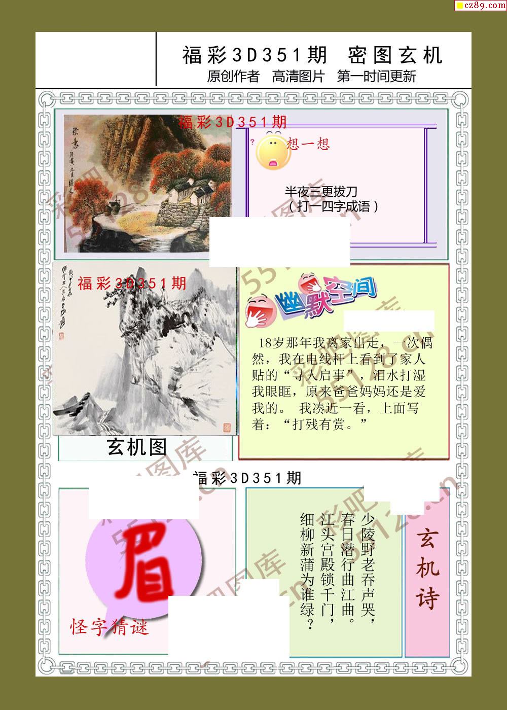 首页 > 福彩3D图谜 > 密图玄机351期福彩3d字画谜