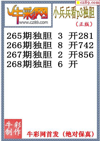 > 小兵兵独胆268期体彩P3图谜(原创)